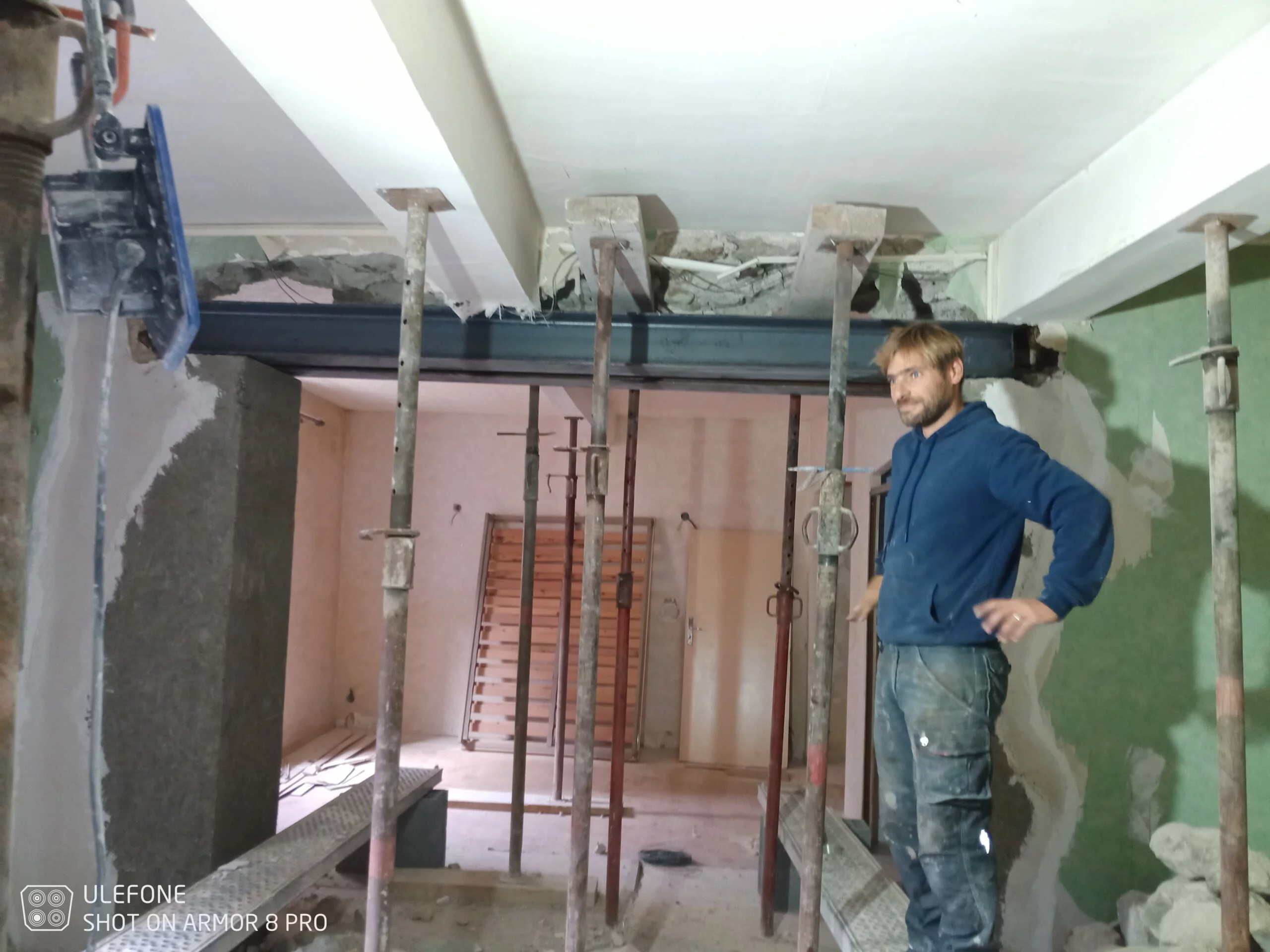 - Élévation des structures: Pose des murs porteurs, poteaux, poutres et planchers,